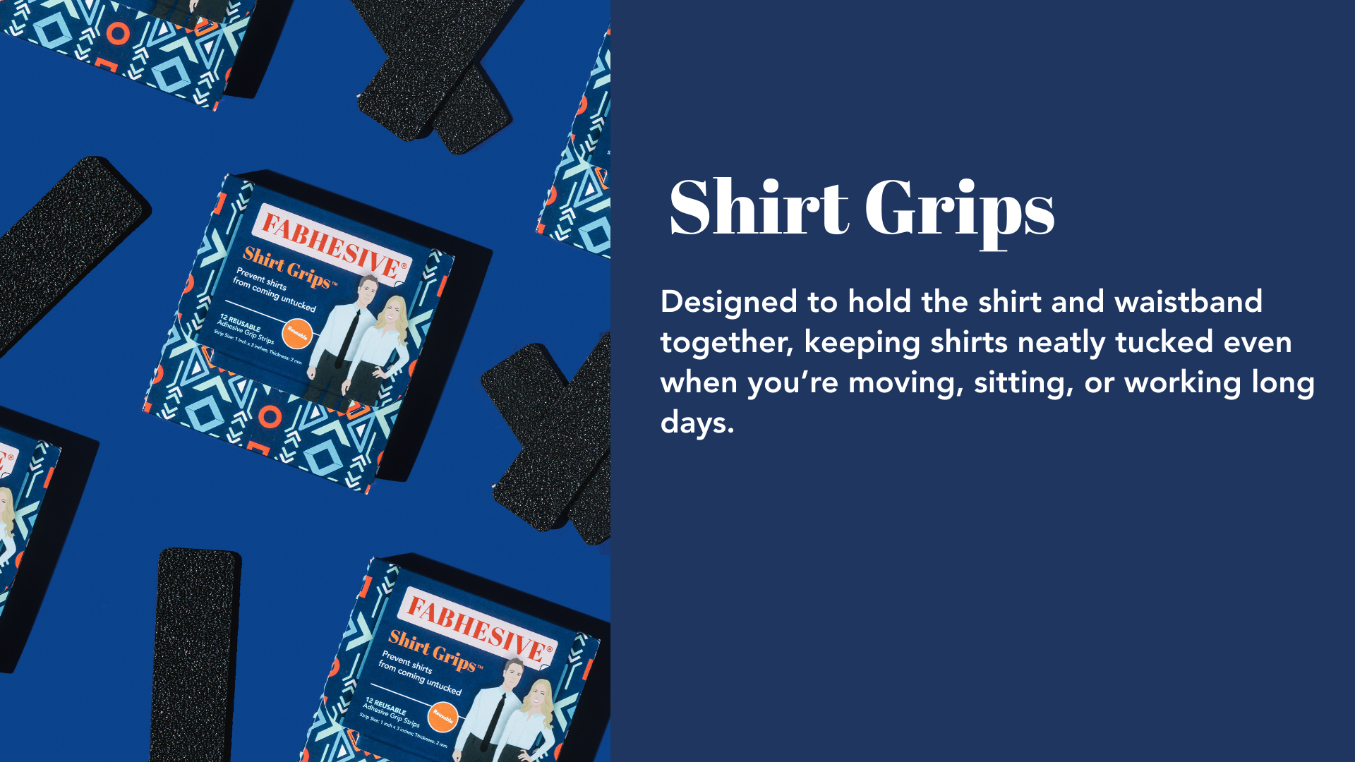Smart grip solutions designed to keep shirts tucked and skirts in place.