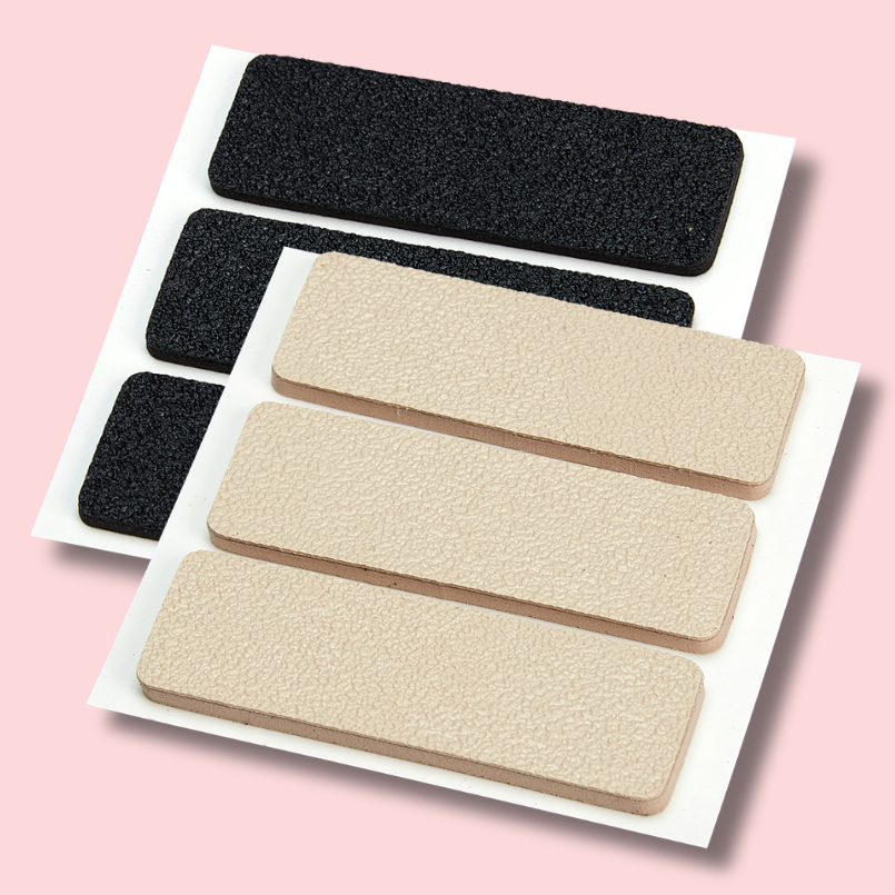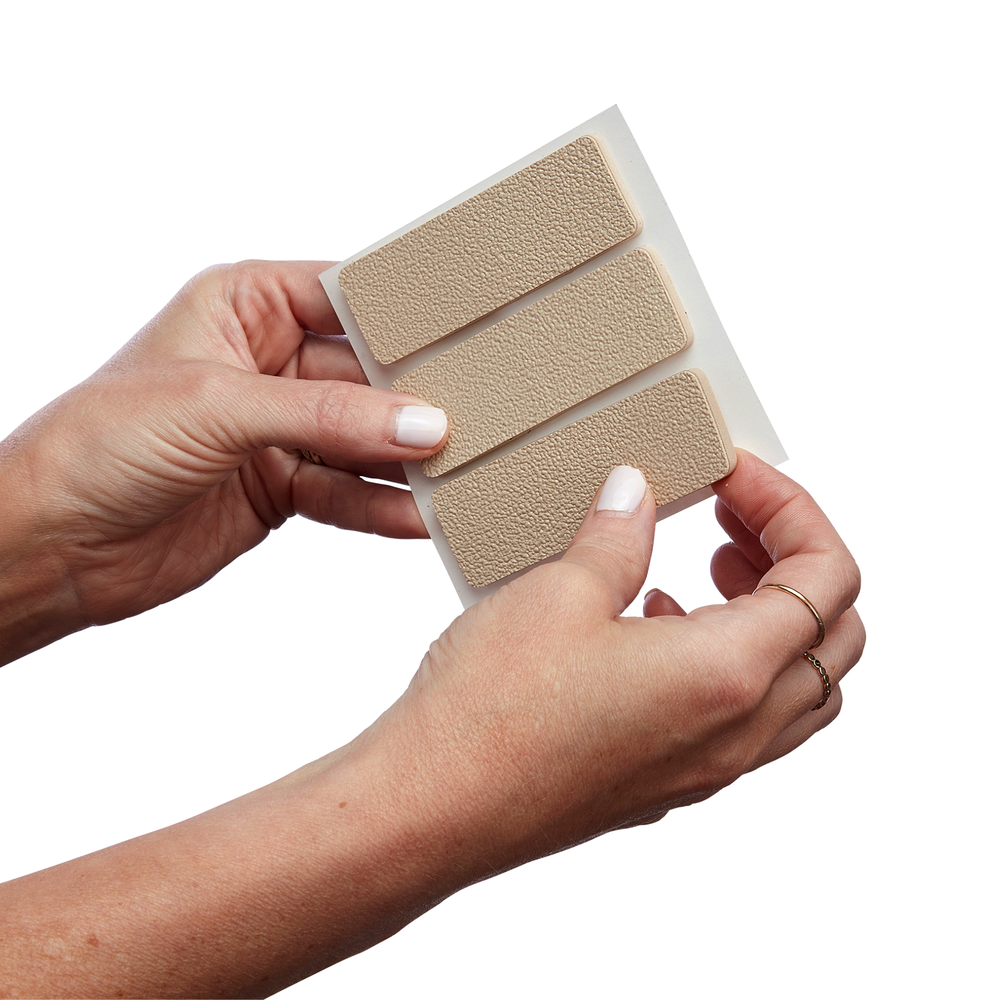Remove the grip strip from the paper backing. After wear, return it to the backing to store and preserve stickiness for reuse.